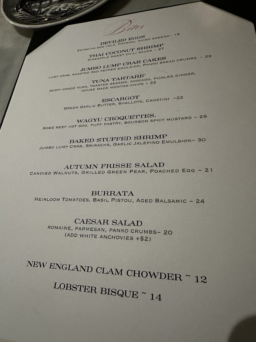 The menu features an enticing array of dishes that showcase the vibrant flavors of American cuisine, thoughtfully crafted with fresh and locally sourced ingredients. Start your evening with a delectable ½ Dozen Oysters ($23) or warm up with a rich and creamy Lobster Bisque ($15), perfectly seasoned to give you that quintessential New England experience. For a delightful twist, the Burrata Served With Prosciutto and house olive tapenade ($22) is an absolute must-try, offering a beautiful combination of textures and flavors that dance on the palate.